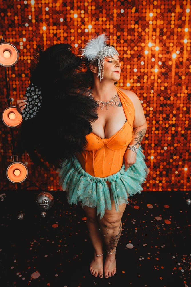 - ONE outfit (client closet not available) however handmade feather hat & fan is of use